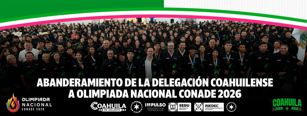 Arranca Manolo el programa “Pa’ las y los Deportistas 2026” en Coahuila Culmina coahuilense Diego Chavez quinto en el Mundial Juvenil de Taekwondo Se establece el Comité Estatal de Proyectos Comunitarios del Estado de Coahuila Finaliza cuarto Marías Grande en la Copa del Mundo de Tiro con Arco Dafne Quintero termina cuarta en la Copa del Mundo de Tiro con Arco Matías Grande y Dafne Quintero al final four de la Copa del Mundo de Tiro con Arco Coahuila con carro completo en Básquetbol rumbo a la Olimpiada Nacional 2026 Suben al podio Ángela Ruiz y Ana Paula Vázquez en la Copa del Mundo de Tiro con Arco Obtienen bronce Dafne Quintero y Sebastián Garía en la Copa del Mundo de Tiro con Arco Avanza selección feminil sub 15 de futbol de Coahuila a la Olimpiada Nacional Ángela Ruiz finaliza segunda en la Indoor World Series Futbol de Coahuila clasifica a la Olimpiada Nacional Arranca la Copa CONADE 2026, clasificatoria a la Olimpiada Nacional Clasifican cuatro triatletas coahuilenses a la Olimpiada Nacional 2026 Buena participación de Coahuila en el Regional de Atletismo Obtiene Coahuila ocho medallas en la Copa Presidente de Tiro con Arco Clasifican seis coahuilenses a la Olimpiada Nacional de Ajedrez Asegura Coahuila su boleto en el beisbol de la Olimpiada Nacional 2026 Coahuila será base de la Selección Mexicana de Tiro con Arco en este 2026 Destaca coahuilense Rubén Delgadillo en hitórico título de México en el Panamericano de Softbol Conmemoran el Día Internacional de la Mujer con clase de Defensa Personal Avanzan nueve coahuilenses a la final del proceso selectivo nacional de Tiro con Arco Es Coahuila el estado que más arqueros aporta al selectivo nacional Clasifica Elsa Piña al Premundial Juvenil de Tenis Clasifica Selección Coahuila de Voleibol a la Olimpiada Nacional 2026 Entrega Manolo Jimenez el Gimnasio Auditorio de la Región Carbonífera Se realiza en Torreón la toma de marcas de Triatlón Brilla Coahuila en el Indoor World Series Mérida 2026 Arranca Toros Laguna su participación en el CIBACOPA Buscarán cuatro coahuilenses su boleto a los JCC Santo Domingo 2026 en Atletismo