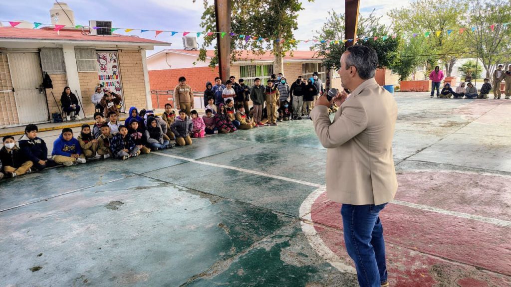 Posteriormente, se realizó la entrega de material deportivo a la primaria “Diana Laura Riojas de Colosio”, evento que presidió Antonio Cepeda Licón, director del Inedec, y el coordinador de la región Norte, Claudio Bres Chapa.